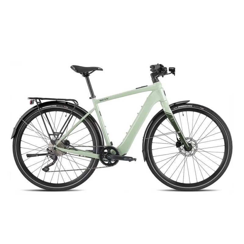 Der leichte Aluminiumrahmen in Diamantform verleiht dem E-Bike eine sportliche Optik und gleichzeitig hohe Stabilität. Die Rahmengeometrie ist auf eine ausgewogene Sitzposition ausgelegt, die sowohl Effizienz als auch Komfort bietet. Ergänzt wird der Rahmen durch eine City-Gabel mit Carbon-Schaft, die Vibrationen effektiv dämpft und so den Fahrkomfort auf längeren Strecken deutlich erhöht. Unebenheiten auf der Straße oder auf Schotterwegen werden spürbar reduziert.
