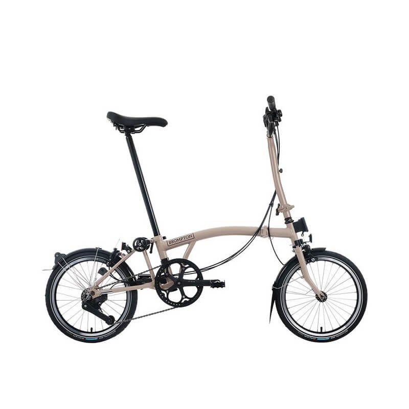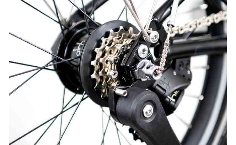 | Schaltwerk | Brompton Wide-Range-6-Gang-Schaltung (2 x 3-Gang), 300 % Übersetzungsbereich |