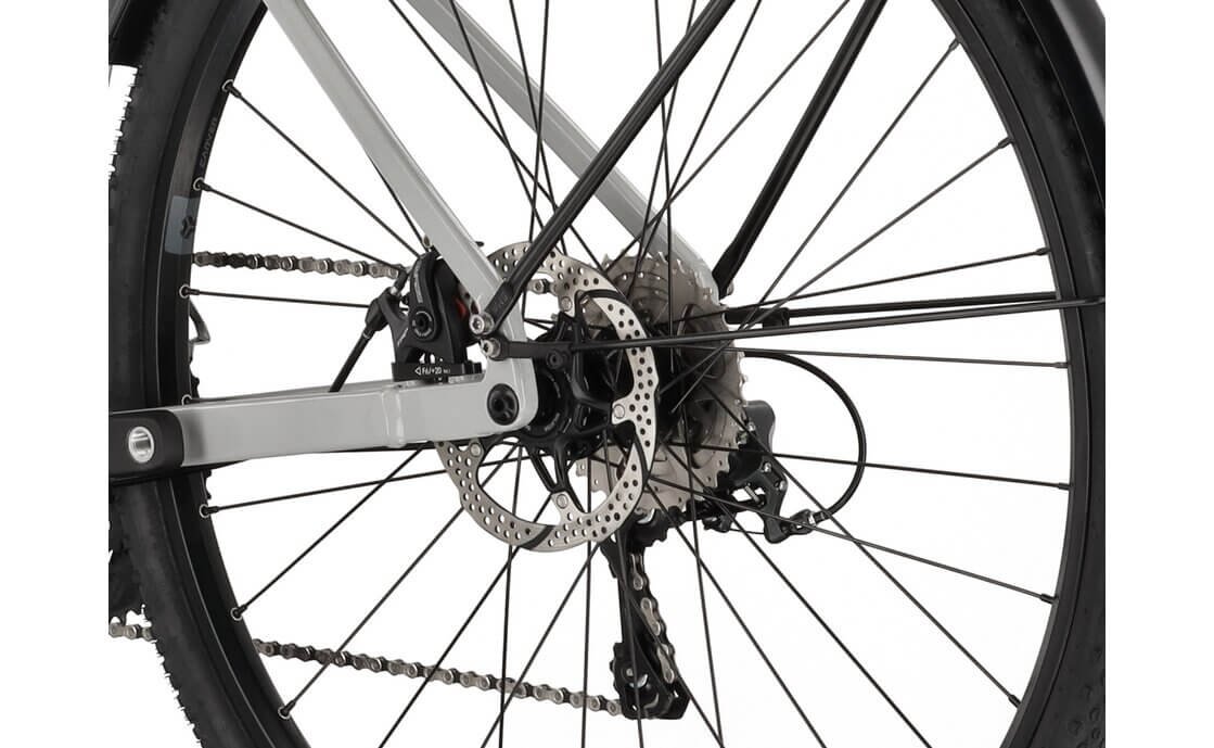 Die mechanischen Scheibenbremsen des Carver Gravel 100 Street bieten zuverlässige Bremskraft, egal bei welchen Wetterbedingungen. Sie arbeiten präzise und liefern eine konstante Leistung, wodurch du immer die Kontrolle behältst – besonders bei schwierigen Fahrverhältnissen. Scheibenbremsen sind in unbefestigtem Gelände und bei nassen Bedingungen die bevorzugte Wahl, da sie weniger anfällig für äußere Einflüsse wie Schmutz oder Feuchtigkeit sind. Diese Bremsen bieten dir daher nicht nur Sicherheit, sondern auch das Vertrauen, das du für jede Fahrt benötigst.