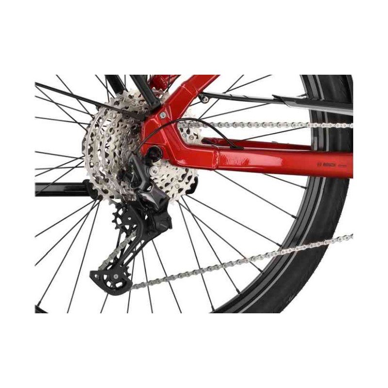 Für die Kraftübertragung setzt Carver beim Route E.440 auf eine erstklassige 11-Gang-Kettenschaltung. Im Vergleich zu Standard-Schaltungen bietet das 11-fach-System eine deutlich feinere Gangabstufung. Das bedeutet, dass du immer die exakt passende Übersetzung findest, um deine Trittfrequenz im optimalen Bereich zu halten – egal ob du eine steile Rampe erklimmst oder mit Rückenwind über die Landstraße fliegst. Die Kettenschaltung ist zudem für ihre Direktheit und Effizienz bekannt, was besonders im Zusammenspiel mit dem Bosch-Motor für ein sportliches Fahrgefühl sorgt.