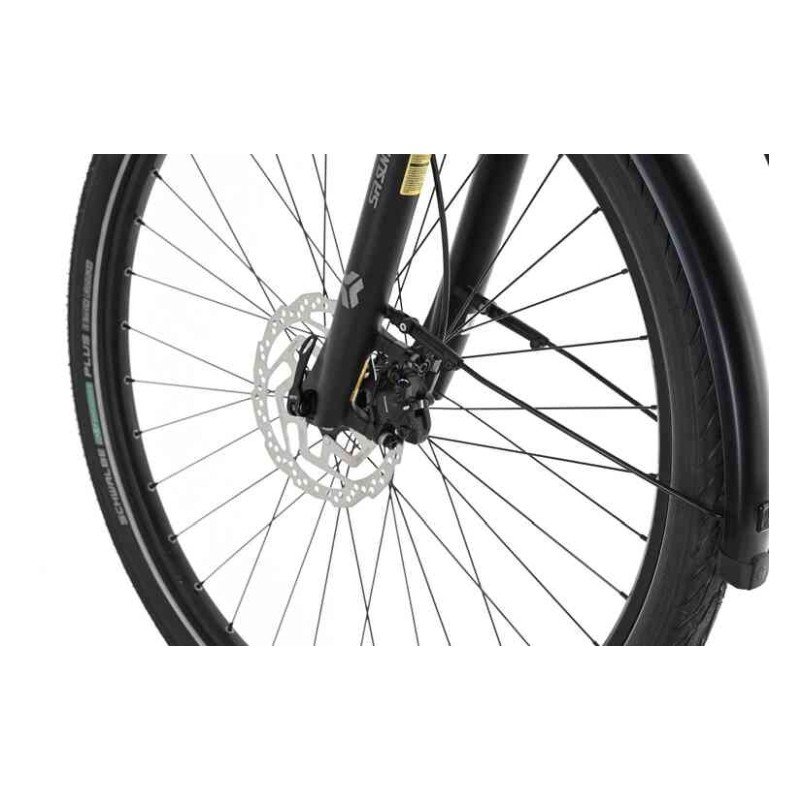 Das Carver Route E.510 ist ein echtes Multitalent. Es ist serienmäßig mit stabilen Schutzblechen ausgestattet, die dich bei Fahrten im Regen vor Schmutz und Spritzwasser schützen. Der robuste Systemgepäckträger ist formschön in das Design integriert und bietet Platz für Packtaschen oder den Korb für den Wocheneinkauf. Mit einer Belastbarkeit von bis zu 140 kg ist das Bike zudem ideal für Radreisen mit schwerem Gepäck geeignet. Ein stabiler Seitenständer ermöglicht das sichere Abstellen des Rades, selbst wenn es voll beladen ist.
