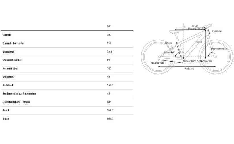 Das 24-Zoll-Bike ist ideal für Kinder im Alter von 8 bis 11 Jahren, mit einer Körpergröße zwischen 125 und 145 cm und einer Schrittlänge von ca. 60 bis 72 cm. Die abgestimmte Geometrie und Ausstattung sorgen dafür, dass junge Mountainbiker sicher, komfortabel und mit Freude unterwegs sind.