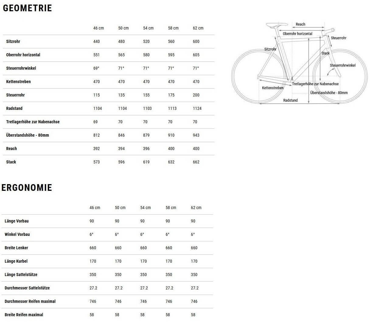 46 CM, 50 CM, 54 CM, 58 CM, 62 CM