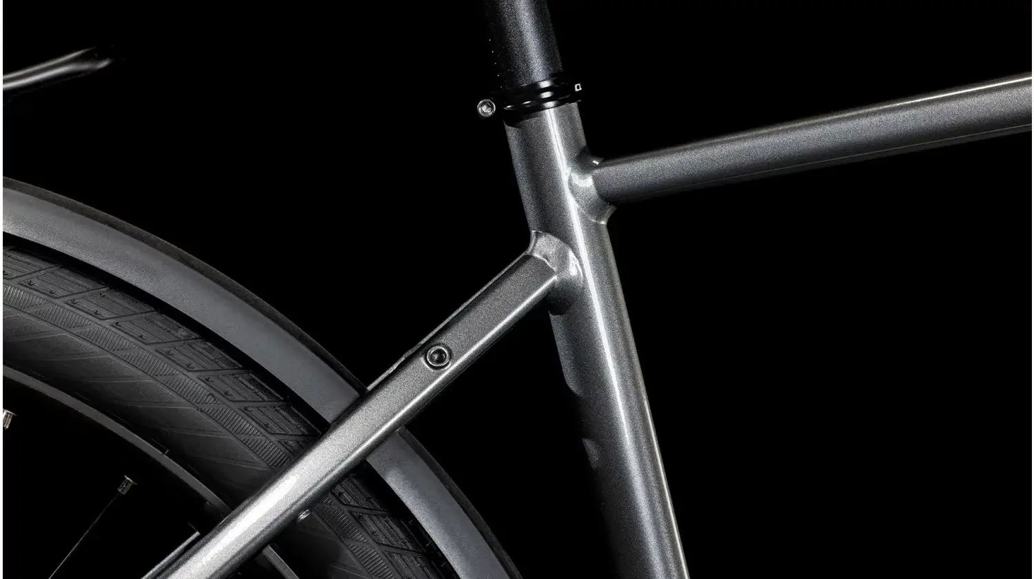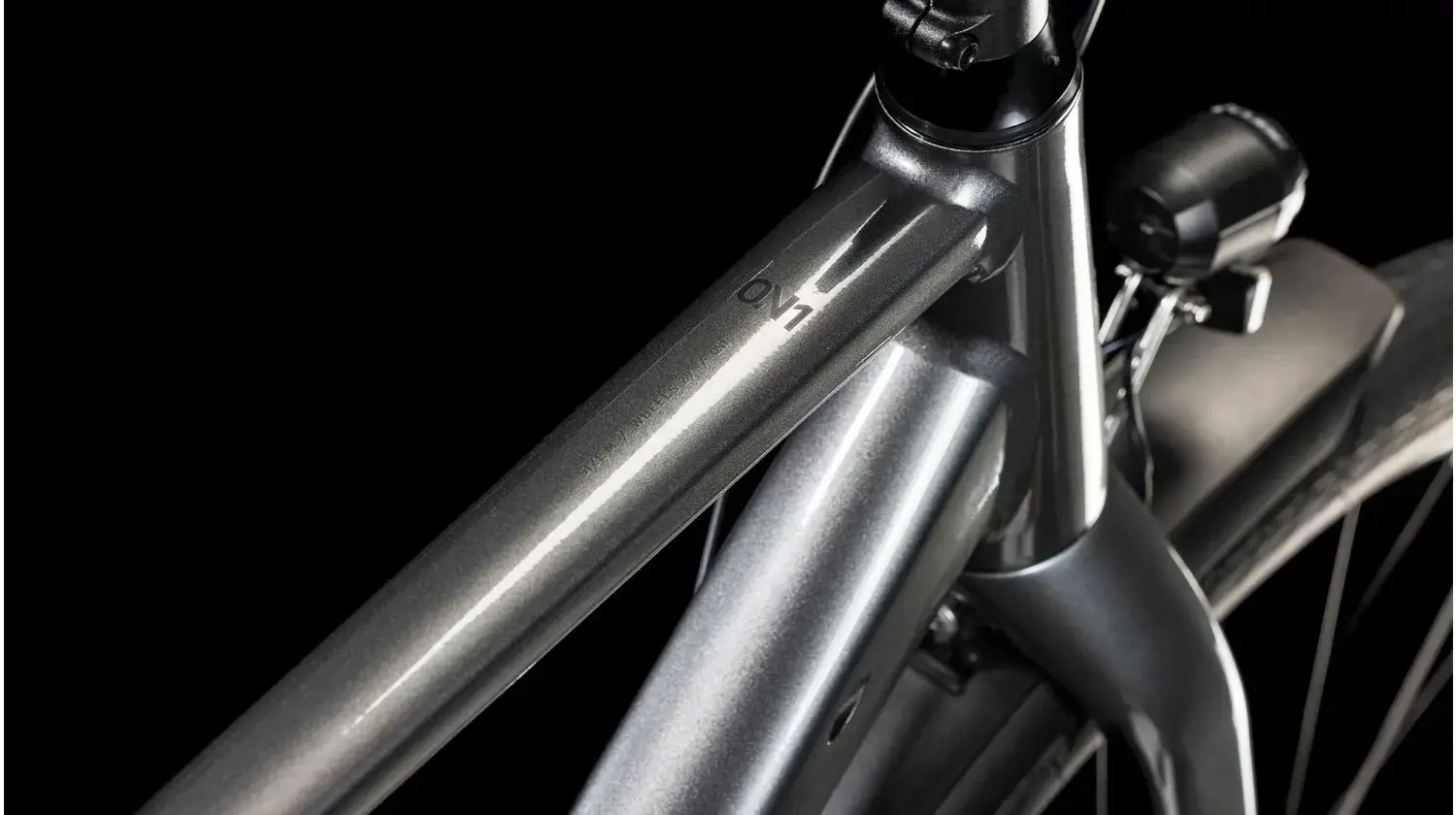 Kein Zweifel, dieser Rahmen ist in den Straßen der Stadt zu Hause. Rohrsätze aus doppelt konifiziertem Aluminium geben ihm eine stabile und zugleich leichte und agile Struktur. Auf dem robusten semi-integrierten Gepäckträger reist sämtliches Hab und Gut sicher von A nach B, dabei halten Schutzbleche die Kleidung sauber und trocken. On top gibt’s einen praktischen Seitenständer und ein dynamobetriebenes Beleuchtungssystem für erstklassige Sicht und Sichtbarkeit. Außerdem bietet das Chassis genügend Platz für die Montage eines zweiten Flaschenhalters, falls die Tour am Wochenende doch mal wieder länger dauert als geplant. Eine leichte Vollcarbongabel vollendet das Set-up – für höchste Lenkpräzision und einen eleganten Look.