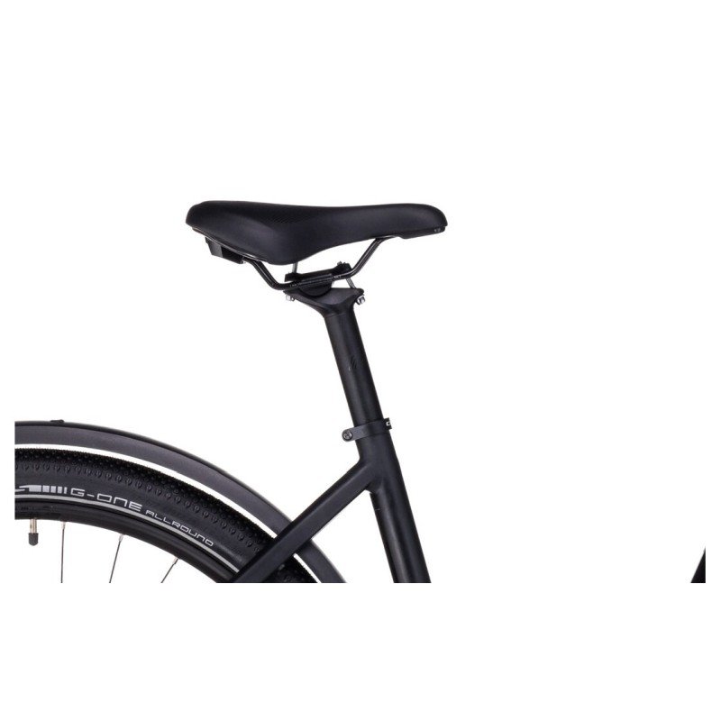Für den nötigen Komfort abseits befestigter Wege sorgt die SR Suntour NVX30 Coil Federgabel mit 100 mm Federweg. Sie schluckt Unebenheiten wie Schlaglöcher oder Wurzeln und schont so deine Gelenke und den Rücken. Unterstützt wird der Fahrkomfort durch die Schwalbe G-One Allround Reifen. Diese bieten durch ihr mäßig profiliertes Profil einen geringen Rollwiderstand auf Asphalt, krallen sich aber sicher in losen Untergrund, sobald du den Radweg verlässt.