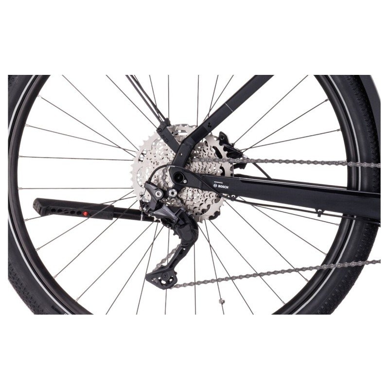 Unterstützt wirst du dabei vom Bosch Mittelmotor Performance Line CX Smart mit 250 Watt. Dieser Motor gehört zur Oberklasse der E-Bike-Antriebe und sorgt dafür, dass Anstiege und längere Touren mühelos gemeistert werden. Ein echtes Kraftpaket ist der Akku mit einer beeindruckenden Kapazität von 750 Wh. Er bietet die nötige Reichweite, um auch weit entfernte Ziele ohne Ladestopp zu erreichen. Mit seiner kompletten Allroad-Ausstattung ist dieses Bike ein wirklicher Allrounder für Alltag und Freizeit, der in jeder Situation Sicherheit und Fahrfreude vermittelt.