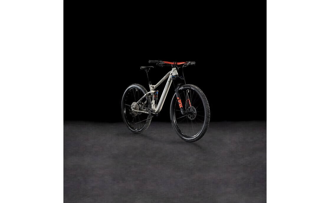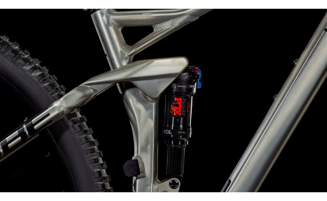 Die Federung des Cube Stereo ONE22 Race ist auf Trails aller Art ausgelegt. Die Kombination aus der Fox 34 Float Rhythm Gabel mit 130 mm Federweg vorne und dem Fox Float Dämpfer am Heck sorgt für ein agiles, reaktionsschnelles Fahrgefühl. Sie schluckt Unebenheiten souverän und ermöglicht es, auch anspruchsvolle Passagen mit Präzision und Stabilität zu meistern.