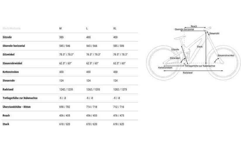 Die Geometrie ist klar abfahrtsorientiert. Ein flacher Lenkwinkel, ein langer Reach und eine ausgewogene Gewichtsverteilung sorgen für hohe Laufruhe und Sicherheit auf steilen und technischen Strecken. Das Bike vermittelt sofort das Gefühl von Stabilität und Kontrolle.