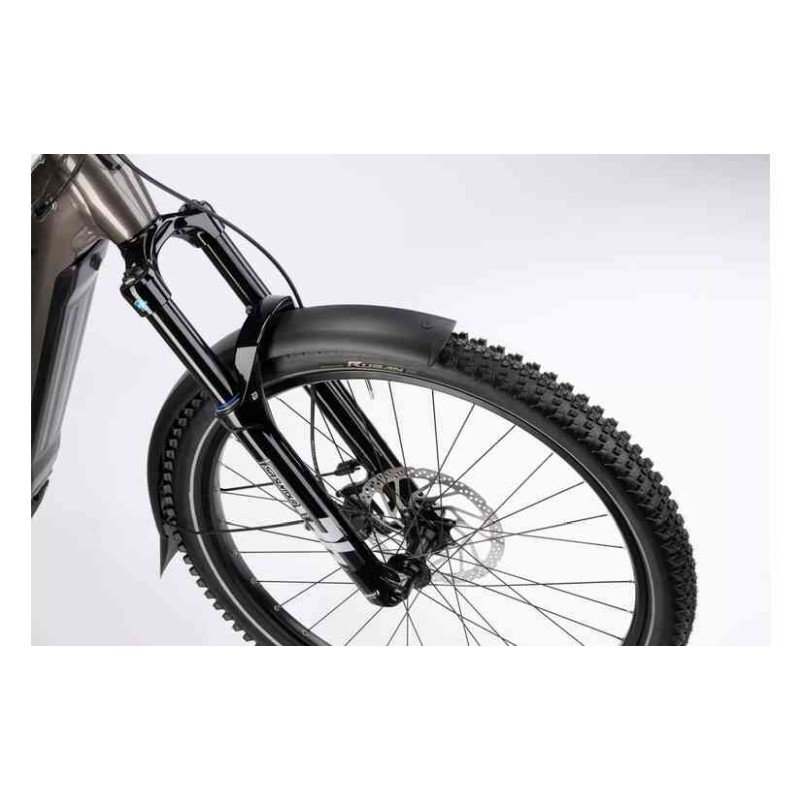 An der Front verrichtet die neue SR Suntour SF25-ZERON36X-Boost ihren Dienst. Mit massiven 140 mm Federweg bietet sie Reserven, die man sonst nur bei waschechten Mountainbikes findet. Die Gabel ist extrem verwindungssteif, was besonders bei einem beladenen E-Bike für ein präzises Lenkverhalten sorgt. In Kombination mit dem gefederten Hinterbau ergibt sich eine Laufruhe, die das Adventr 10 Low wie auf Schienen über Schotter und Waldwege gleiten lässt.