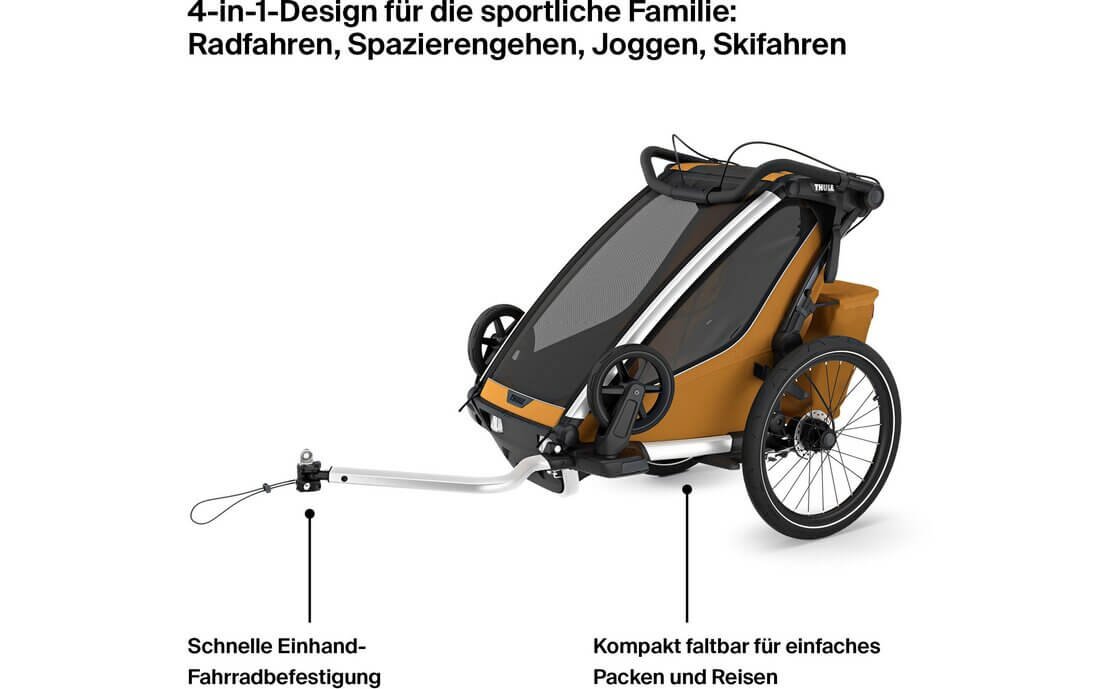 Der Thule Chariot Sport 2 Double ist der ideale Multifunktionsanhänger für aktive Familien mit zwei Kindern. Dieser Anhänger bietet außergewöhnliche Vielseitigkeit und Komfort, perfekt für Aktivitäten wie Joggen, Radfahren, Spazierengehen und sogar Skilanglauf. Der Chariot Sport 2 Double überzeugt durch seine hochwertige Verarbeitung, erstklassige Materialien und durchdachte Details. Mit seiner ausgezeichneten Federung und der Möglichkeit, verschiedene Sets anzubringen, sorgt dieser Anhänger für eine sichere und angenehme Fahrt für beide Kinder.